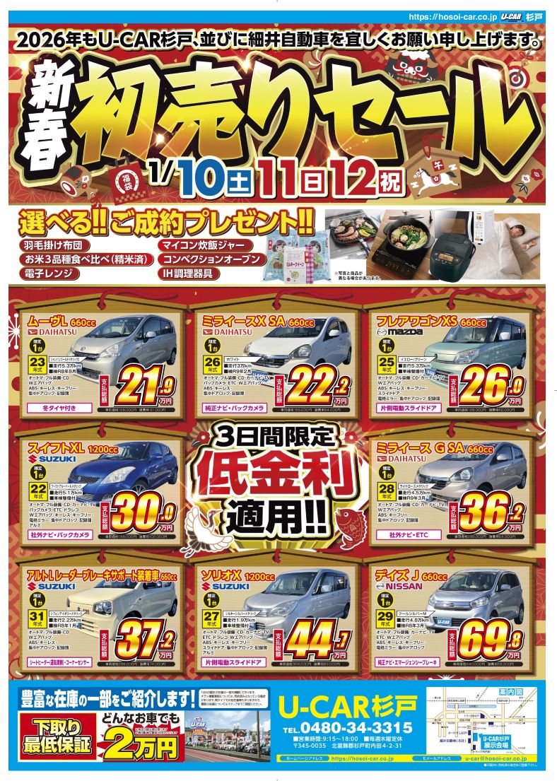 1月10日(土)~12日(月)はU-CAR杉戸へ!